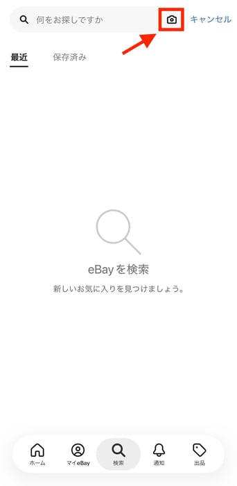 ここをクリックして商品の写真を取ることで、文字を入力しなくても同様の商品を勝手に検索してくれる機能になっています。