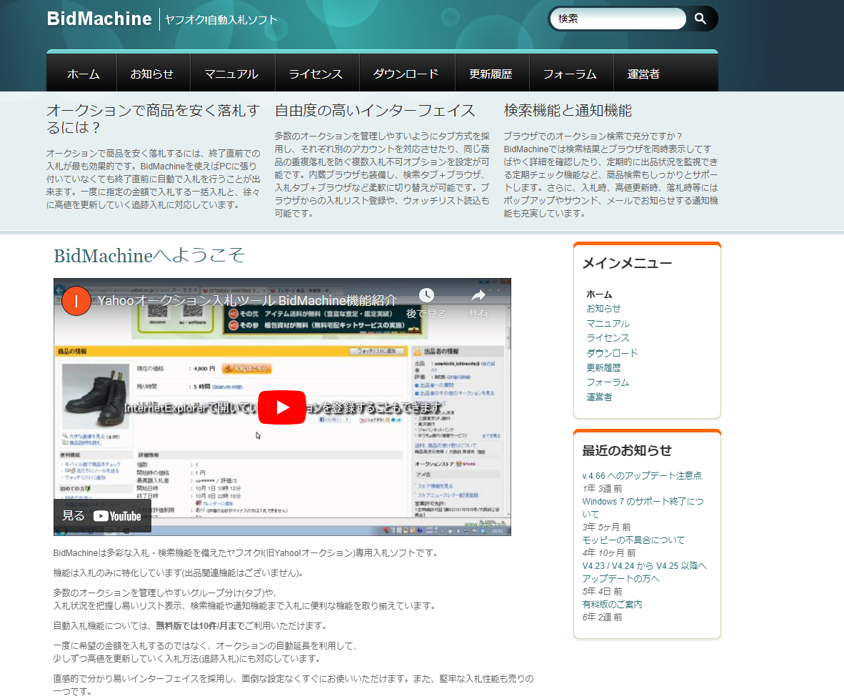 BidMachineは多彩な入札・検索機能を備えたヤフオク!(旧Yahoo!オークション)専用入札ソフトです。