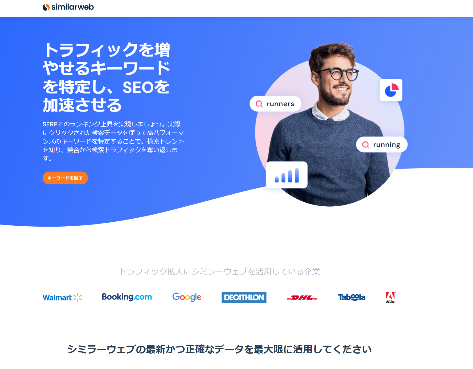 similarwebは、キーワードを入力すると、Google、Youtube、Bing、Yahoo、Amazon、eBay、DuckDuckGo、 Pinterest のオートコンプリートからキーワードアイデアを生成します。データは、CSV でエクスポートできます。