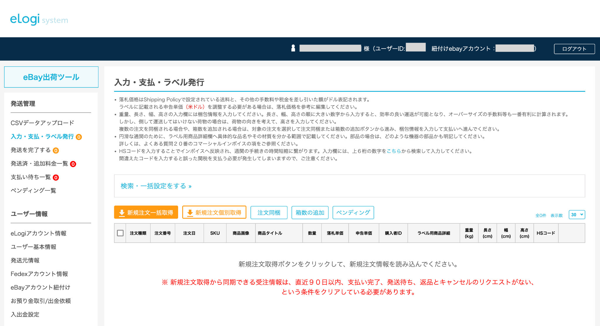 eBay上で販売されたデータを同期化して日本郵便,DHL,FedExのラベル発行が簡単に使えます。(eBay注文