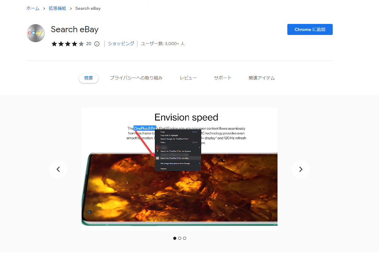 クリックするだけで、ebayに行く。という拡張機能です。ショートカットですね。使用頻度が高い人におすすめです。