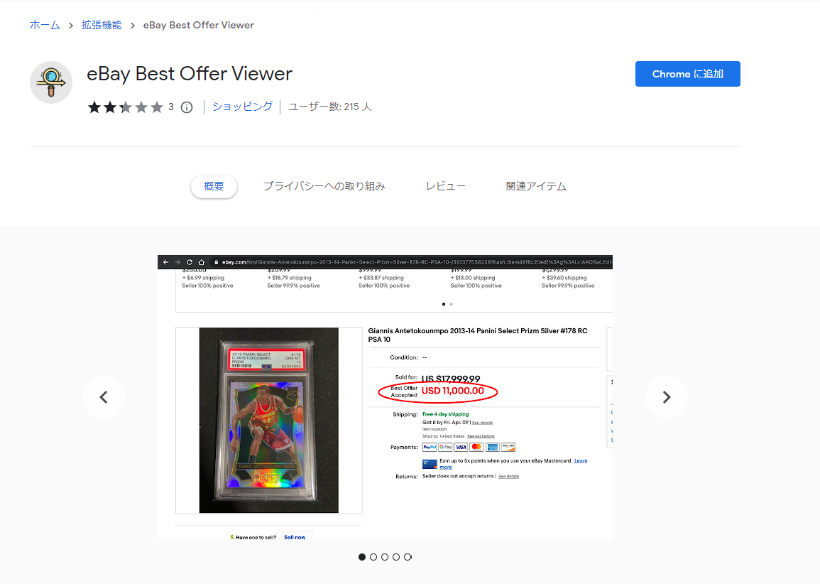 お気に入りのアイテムをブラウズしながら、eBayのBest Offer Accepted Priceを簡単に表示できます。