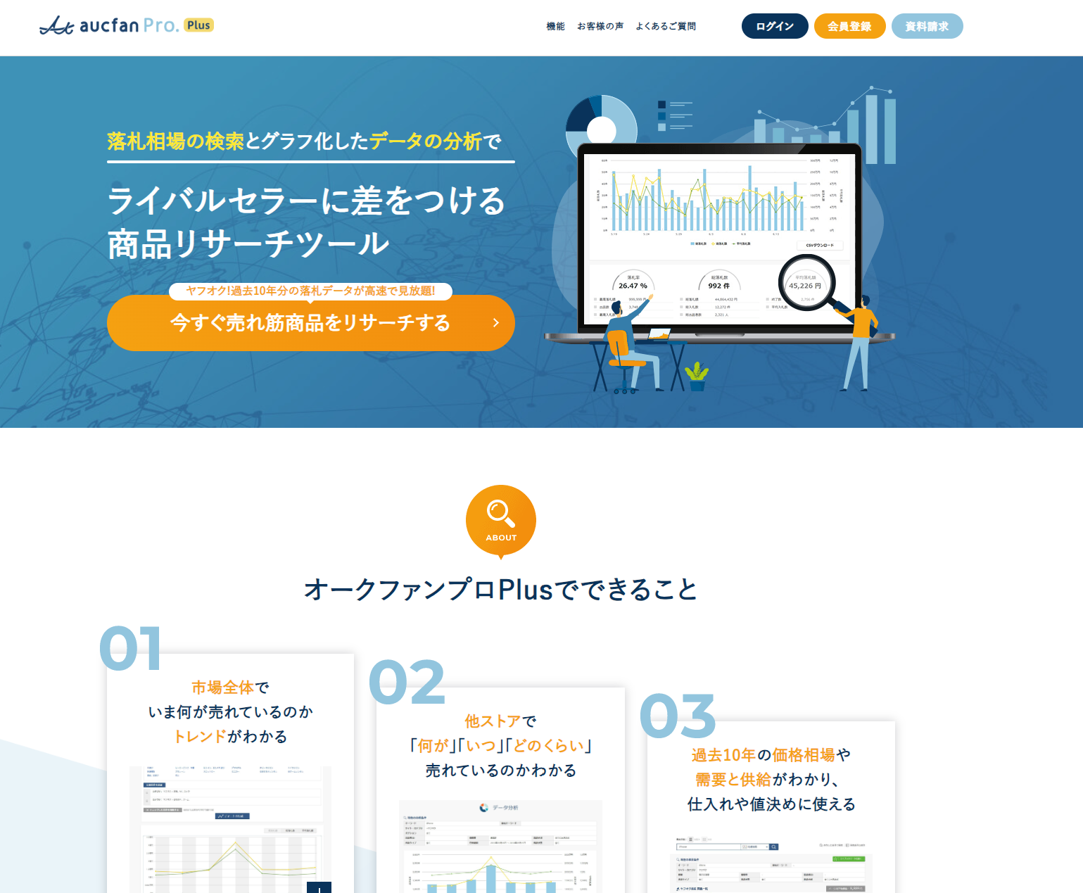 オークファンプロPlusは、大手オークションサイトでの商品リサーチや販売状況の分析、売買戦略を立てることができます。