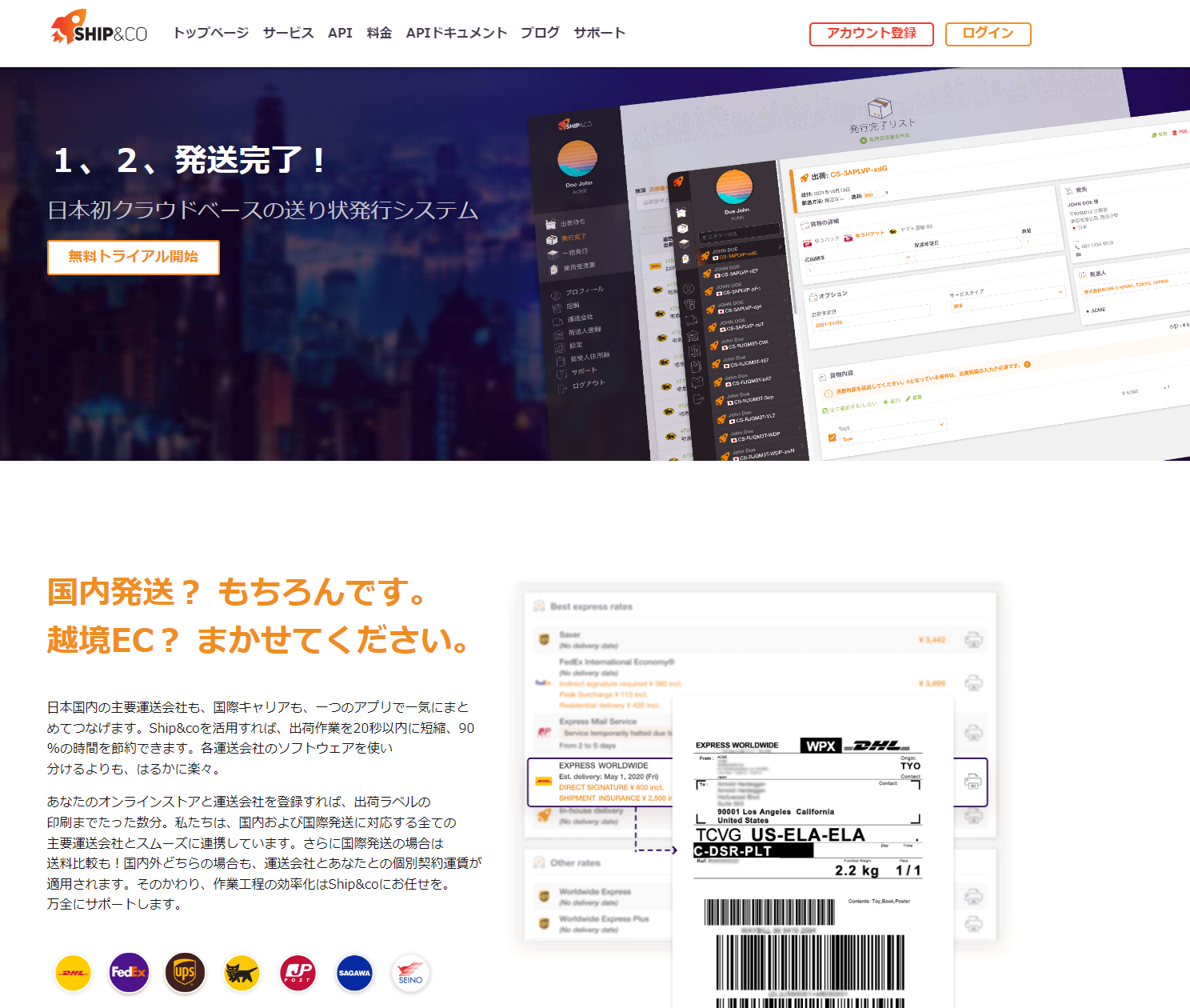 Ship&coは、ワンクリックで送り状・インボイスを簡単に発行できる、日本初のクラウドベースの出荷管理システムです。複数のEC店舗のオーダーを一元管理でき、送料の比較、送り状・インボイスの発行、追跡情報の同期までの出荷作業を1つのインターフェイスで完了できます。